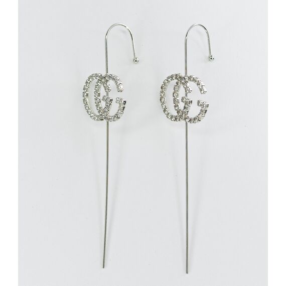 Серьги из гипоаллергенного ювелирного сплава серого цвета. Вставка- ювелирное стекло белого цвета. Высота серег-7,0см, ширина-2,0см. Застежка- пусет.