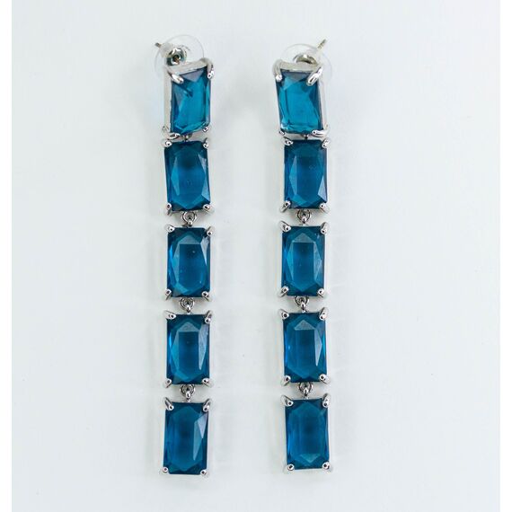 Серьги из гипоаллергенного ювелирного сплава серого цвета. Вставка -кварц синего цвета. Высота серег-8см, ширина-0,8см. Застежка- пусет.
