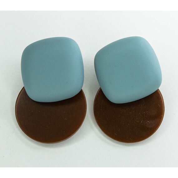 Серьги из гипоаллергенного ювелирного сплава серого цвета и пластика, цвет- голубой, коричневый. Итальянский замок(швенза-1,2см и застежка-клипса). Высота серег-4,5см, ширина-3см.