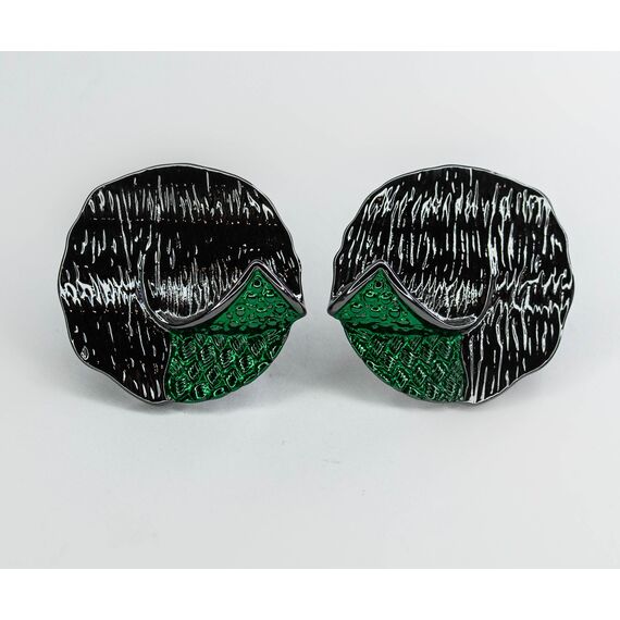 Серьги из гипоаллергенного ювелирного сплава черного и зеленого цвета. Без вставок. Итальянский замок( швенза-1,2см и застежка-клипса). Высота серег-3см, ширина-3см.