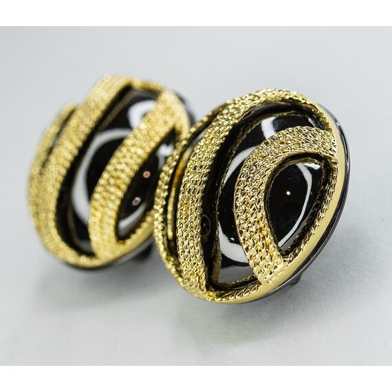 Серьги из гипоаллергенного ювелирного сплава черного и желтого цвета. Без вставок. Высота и ширина серег-2,5см. Итальянский замок ( швенза-1,2см и застежка- клипса).