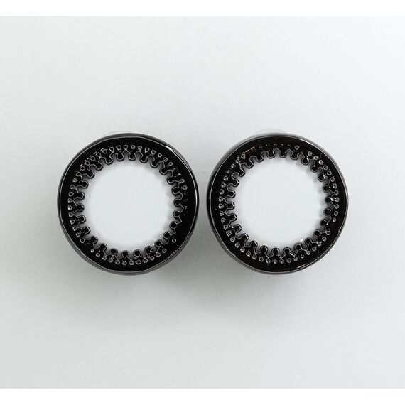 Серьги из гипоаллергенного ювелирного сплава черного цвета. Без вставок. Покрытие эмалью белого цвета. Итальянский замок (швенза-1,2см и застежка-клипса). Высота серег-2см, ширина-2см.