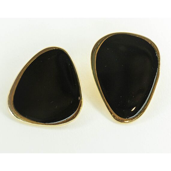 Серьги из гипоаллергенного ювелирного сплава желтого цвета. Без вставок. Покрытие эмалью черного цвета. Итальянский замок (швенза-1,2см и застежка-клипса). Высота серег-3,5см, ширина-3см.