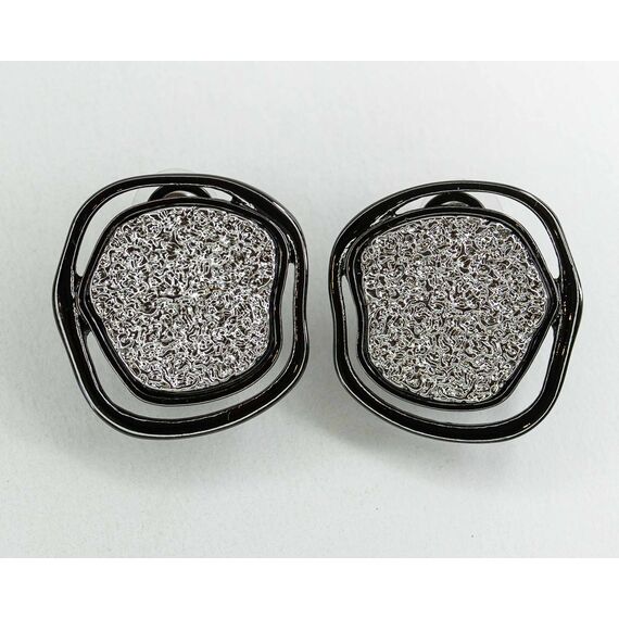 Серьги из гипоаллергенного ювелирного сплава серого и черного цвета.Без вставок.Итальянский замок( швенза-1,2см и застежка-клипса). Высота серег-3см, ширина-3см.