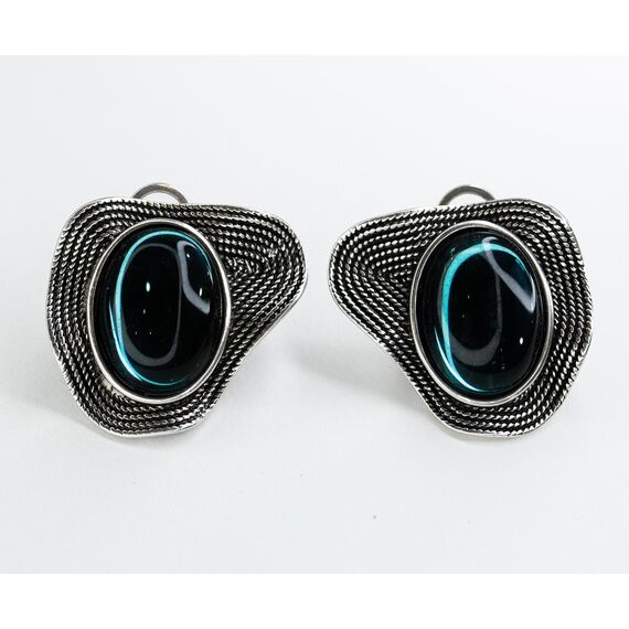 Серьги из гипоаллергенного ювелирного сплава серого цвета Вставка-улексит (кошачий глаз) ,цвет- лондон блю..Итальянский замок (швенза-1,2см и застежка-клипса). Высота серег-3см. ширина-3см.