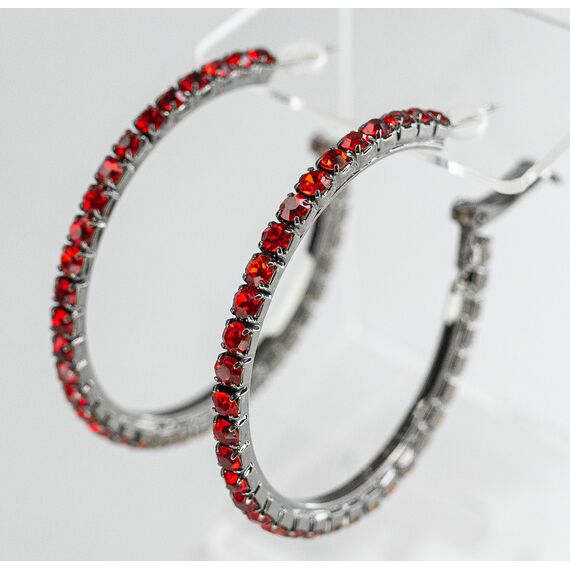 Серьги женские из гипоаллергенного ювелирного сплава черного цвета. Вставка- .ювелирное стекло красного цвета. Высота серег- 7,0см. ширина- 7,0см. Застежка- конго..