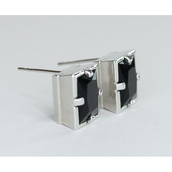 Серьги женские из гипоаллергенного ювелирного сплава серого цвета. Вставка- ювелирное стекло , цвет-черный. Высота серег-1,0см, ширина-1,0см. Застежка- пусет.