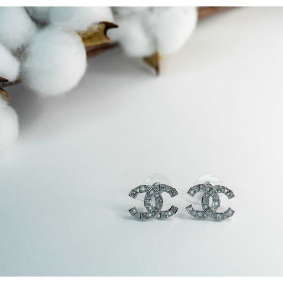Серьги из гипоаллергенного ювелирного сплава серого цвета. Вставка- ювелирное стекло белого цвета. Высота серег-1,3см, ширина-1,6см. Застежка- пусет.