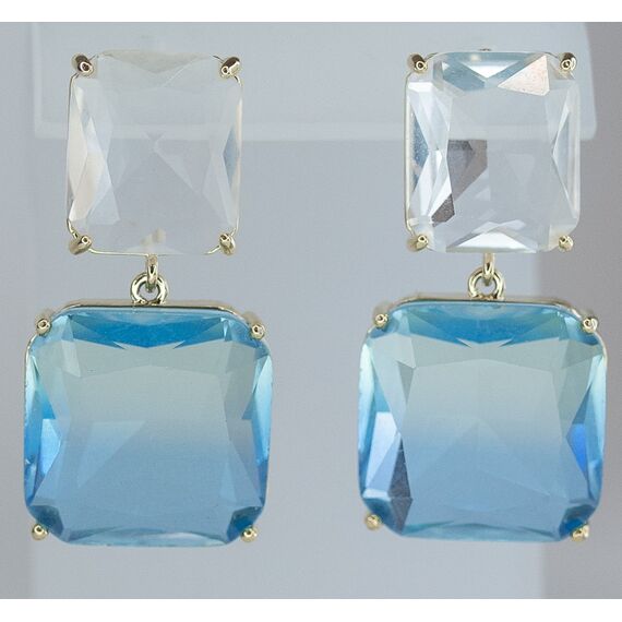 Серьги женские из гипоаллергенного ювелирного сплава желтого цвета. Вставка- ювелирное стекло белого и голубого цвета. Высота серег-3,0см, ширина- 1,5см. Застежка- пусет.