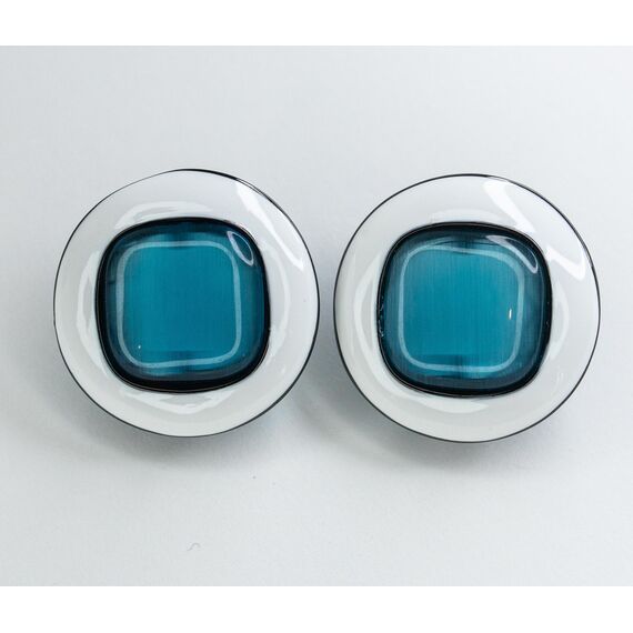 Серьги из гипоаллергенного ювелирного сплава черного цвета. Вставка- улексит( кошачий глаз) голубого цвета. Покрытие эмалью белого цвета. Итальянский замок (швенза-1,2см и застежка- клипса). Высота серег-3см, ширина -3см.
