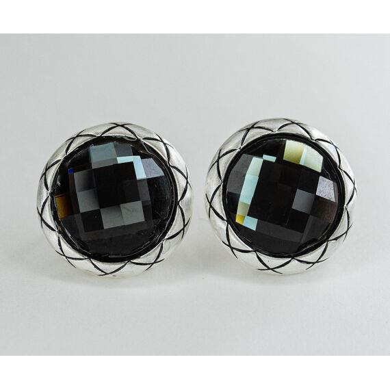 Серьги из гипоаллергенного ювелирного сплава серого цвета. Вставка- ювелирное стекло серого цвета. Итальянский замок (швенза-1,2см и застежка- клипса). Высота серег-2,5см, ширина -2,5см.
