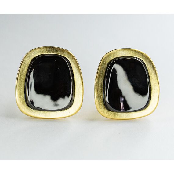 Серьги из гипоаллергенного ювелирного сплава желтого и черного цвета. Без вставок. Высота серег-2см, ширина -2см. Итальянский замок (швенза-1,2см и застежка- клипса).
