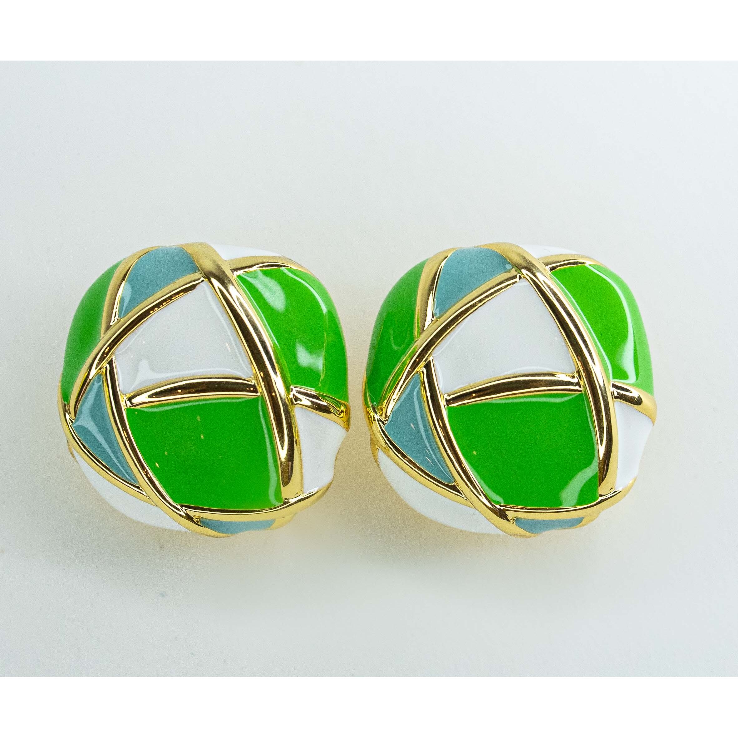 Серьги из гипоаллергенного ювелирного сплава, цвет- желтый. Покрытие эмалью горячим способом ,цвет- белый,зеленый,голубой Без вставок.Серьги с итальянским замком ( длина швензы-1,2см и застежка- клипса).