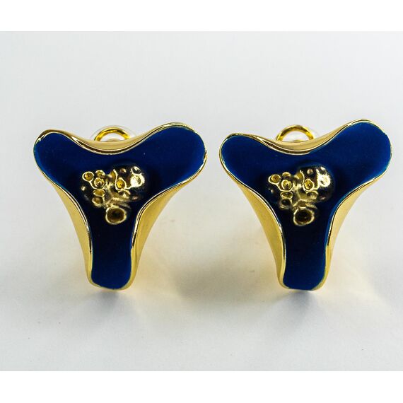 Серьги из гипоаллергенного ювелирного сплава желтого цвета. Без вставок. Покрытие эмалью синего цвета. Итальянский замок ( швенза-1,2см и застежка- клипса). Высота серег-3см, ширина-3см.