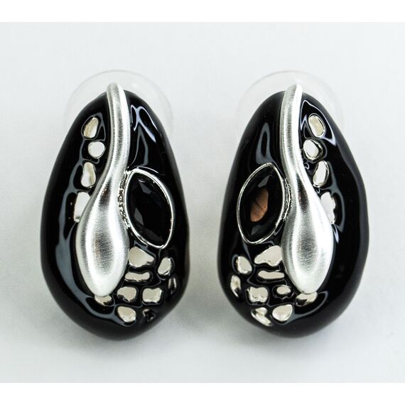 Серьги из гипоаллергенного ювелирного сплава, цвет-черный, серый. Вставка-ювелирное стекло черного цвета. Высота серьги - 2,5см, ширина - 1,6см.Итальянский замок ( швенза - 1,2см, застежка- клипса).