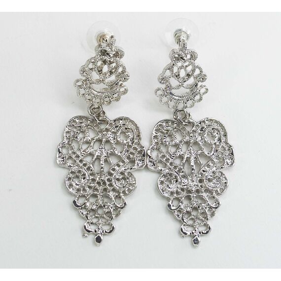 Серьги из гипоаллергенного ювелирного сплава серого цвета. Без вставок. Высота серег-6см, ширина-2,5см. Застежка- пусет.