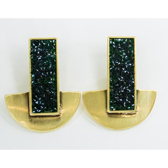 Серьги из гипоаллергенного ювелирного сплава желтого цвета. Вставка-ювелирное стекло, цвет- зеленый. Итальянский замок(швенза- 1,2см и застежка-клипса).Высота серег-5см. ширина-4см.