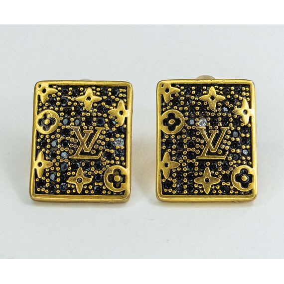 Серьги из гипоаллергенного ювелирного сплава желтого цвета. Вставка- ювелирное стекло черного и белого цвета. Высота серег-2,0см, ширина-1,6см. Застежка- пусет.