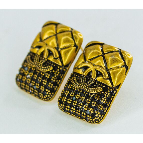 Серьги из гипоаллергенного ювелирного сплава желтого цвета. Вставка- ювелирное стекло черного цвета. Высота серег-2,0см, ширина-1,3см. Застежка- пусет.