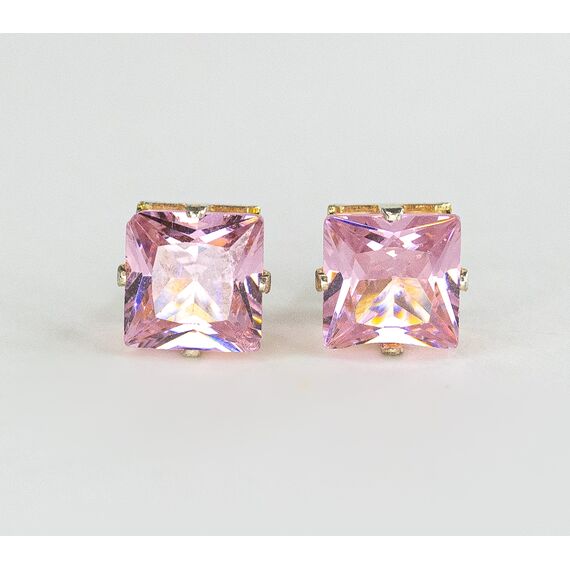 Серьги из гипоаллергенного ювелирного сплава серого цвета. Вставка- ювелирное стекло, цвет-розовый. Диаметр серег-0,9см. Застежка- пусет.