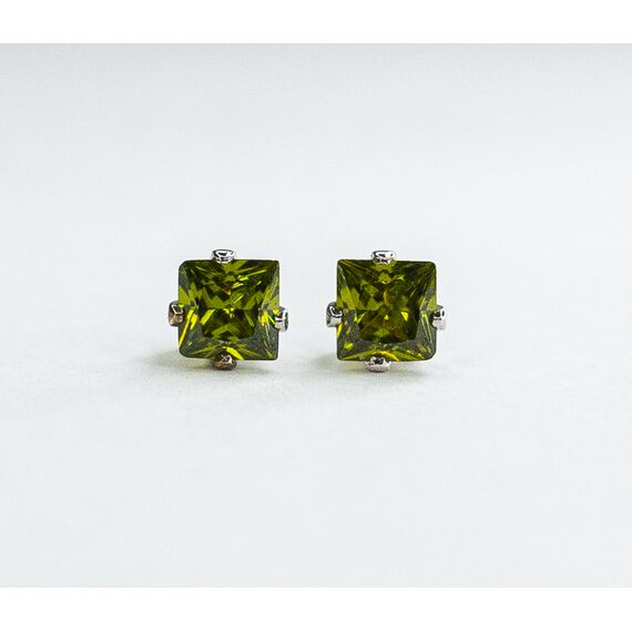 Серьги из гипоаллергенного ювелирного сплава серого цвета. Вставка- ювелирное стекло, цвет-зеленый. Диаметр серег-0,5см. Застежка- пусет.