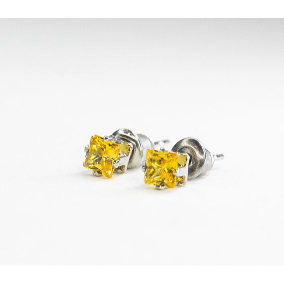 Серьги из гипоаллергенного ювелирного сплава серого цвета. Вставка- ювелирное стекло, цвет-желтый. Диаметр серег-0,5см. Застежка- пусет.