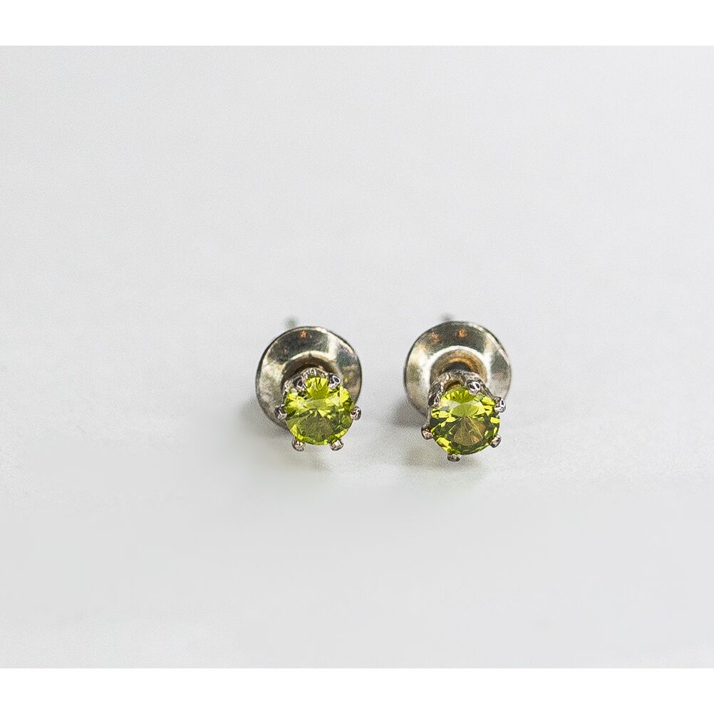 Серьги из гипоаллергенного ювелирного сплава серого цвета. Вставка- ювелирное стекло, цвет-зеленый. Диаметр серег-0,2см. Застежка- пусет.