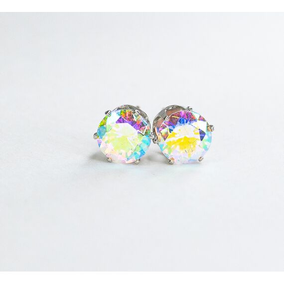 Серьги из гипоаллергенного ювелирного сплава серого цвета. Вставка- ювелирное стекло, цвет-мистик. Диаметр серег-0,5см. Застежка- пусет.