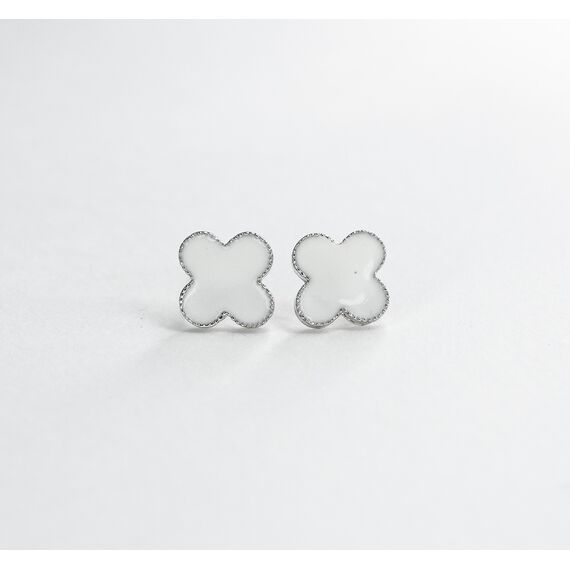 Серьги из гипоаллергенного ювелирного сплава серого цвета. Покрытие эмалью белого цвета. Высота серег-0,9см, ширина-0,9см. Застежка- пусет.