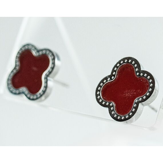 Серьги из гипоаллергенного ювелирного сплава серого цвета. Покрытие эмалью красного цвета. Высота серег-1,3см, ширина-1,3см. Застежка- пусет.