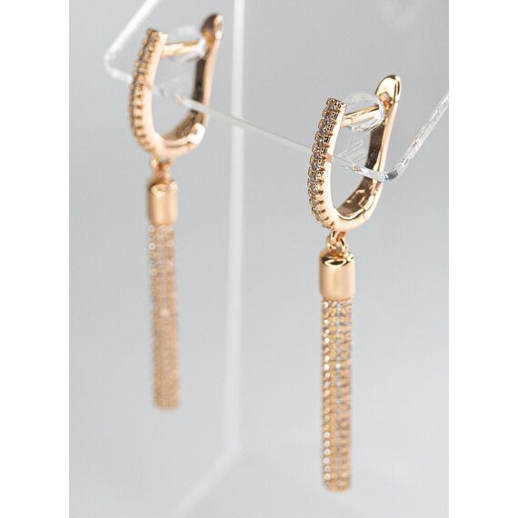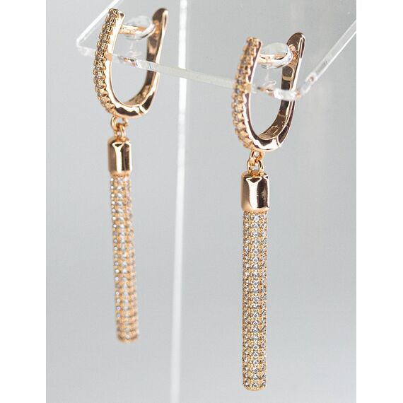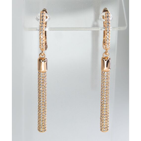 Серьги из гипоаллергенного ювелирного сплава, цвет-желтый. Вставка- ювелирное стекло белого цвета. Английский замок (швенза- 1см), Высота серег-4,5см, ширина-0,3см.