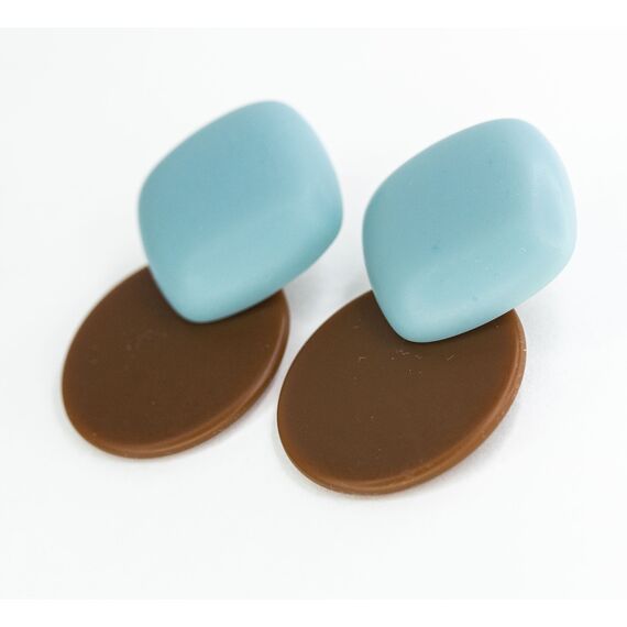 Серьги из гипоаллергенного ювелирного сплава, цвет-серый и пластика голубого и коричневого цвета. Высота серег-5,0см, ширина-3,0см. Итальянский замок ( швенза-1,2см и застежка- клипса).