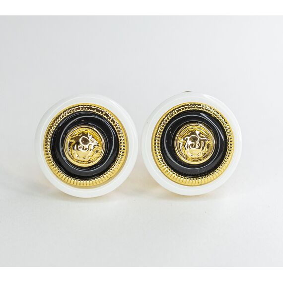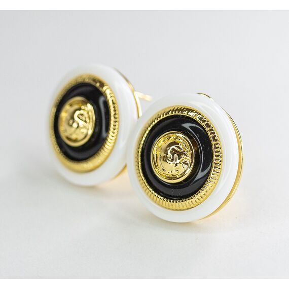Серьги из гипоаллергенного ювелирного сплава, цвет-желтый и керамики белого и черного цвета. Высота серег-2,3см, ширина-2,3см. Итальянский замок ( швенза-1,2см и застежка- клипса).