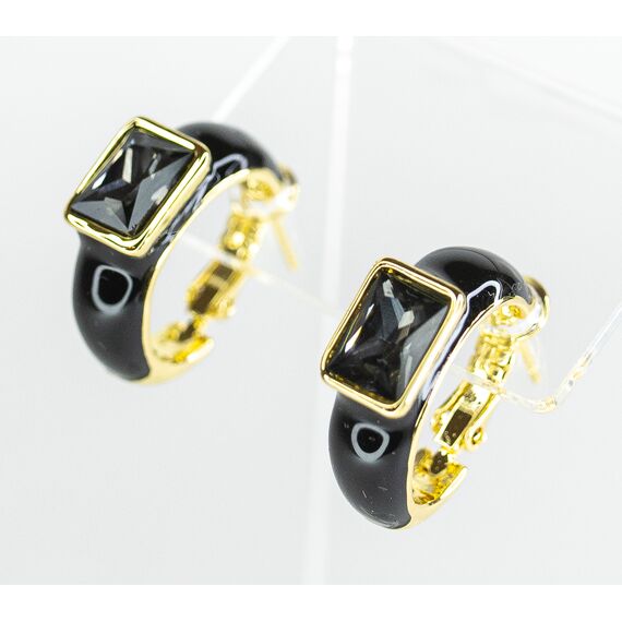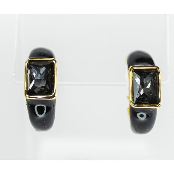 Серьги из гипоаллергенного ювелирного сплава желтого цвета. Вставка- ювелирное стекло серого цвета. Покрытие эмалью черного цвета. Высота серег-2см, ширина-0,8см. Итальянский замок (швенза-1,2см и застежка- клипса).