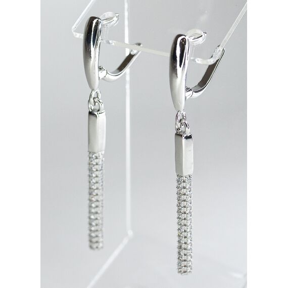 Серьги из гипоаллергенного ювелирного сплава, цвет-серый. Вставка- ювелирное стекло белого цвета. Английский замок (швенза- 1см), Высота серег-6см, ширина-0,4см.