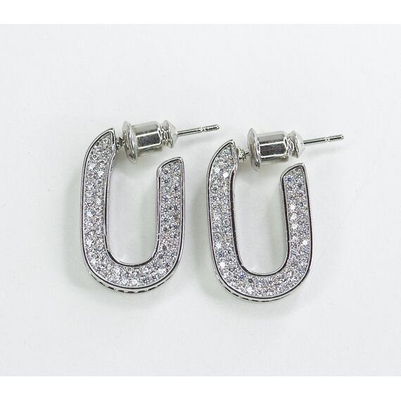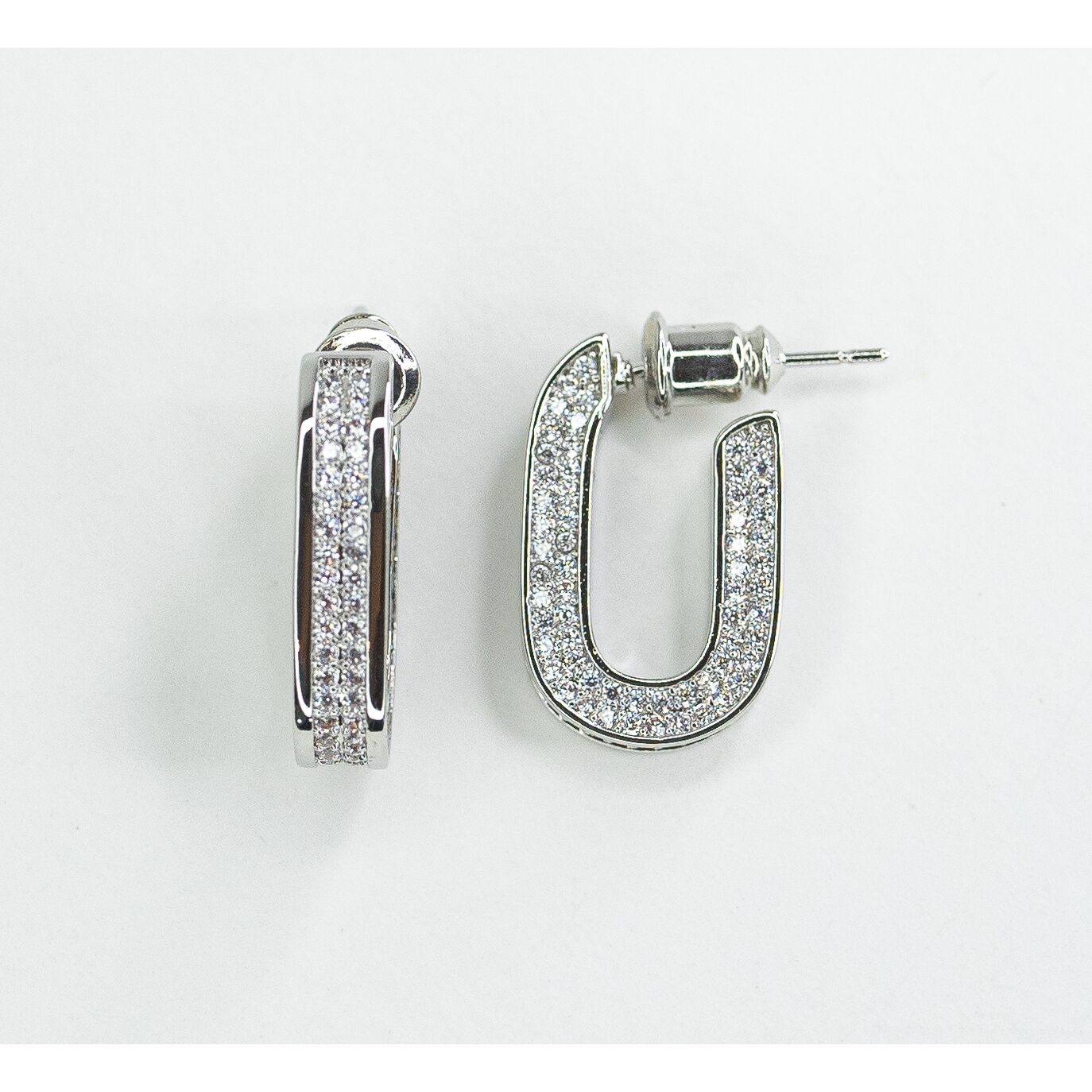 Серьги двухсторонние из гипоаллергенного ювелирного сплава, цвет-серый. Вставка- циркон белого цвета. Высота серег-1,5см, ширина-0,4см. Застежка- пусет.