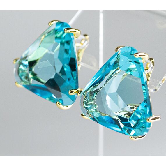 Серьги из гипоаллергенного ювелирного сплава, цвет-желтый. Вставка- ювелирное стекло голубого цвета. Высота серег-3,0см, ширина-3,0см. Застежка- английская ( швенза-1см).