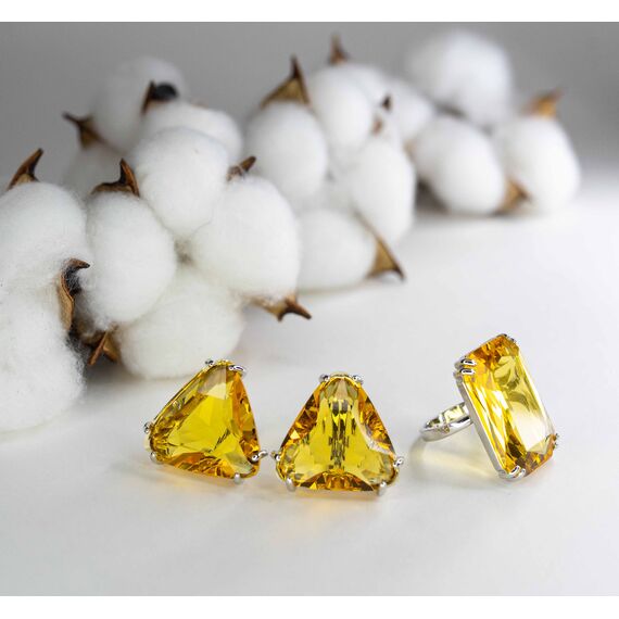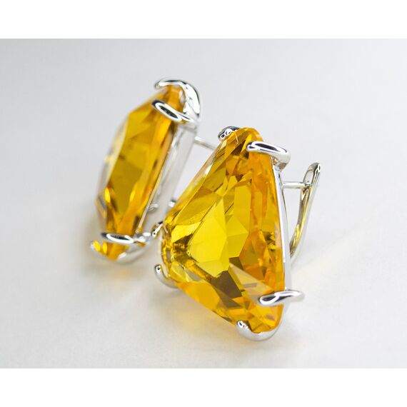 Серьги из гипоаллергенного ювелирного сплава, цвет-желтый. Вставка- ювелирное стекло желтого цвета. Английский замок (швенза- 1см), Высота серег-2,0см, ширина-2,5см.