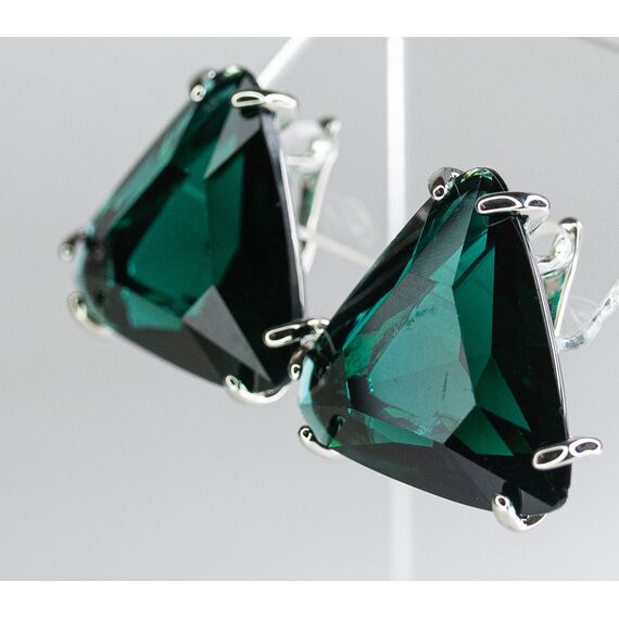 Серьги из гипоаллергенного ювелирного сплава, цвет-серый. Вставка- ювелирное стекло зеленого цвета. Английский замок (швенза- 1см), Высота серег-3,0см, ширина-3,0см.