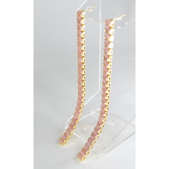 Серьги из гипоаллергенного ювелирного сплава желтого цвета. Вставка- улексит розового цвета. Высота серег-10,5см, ширина-0,5см. Застежка- пусет.