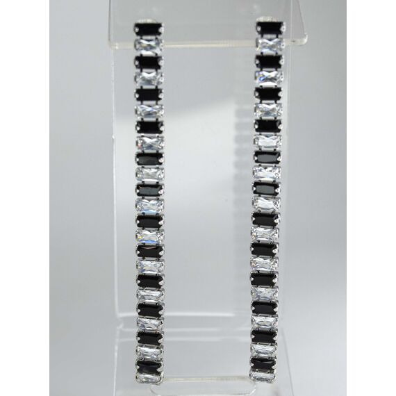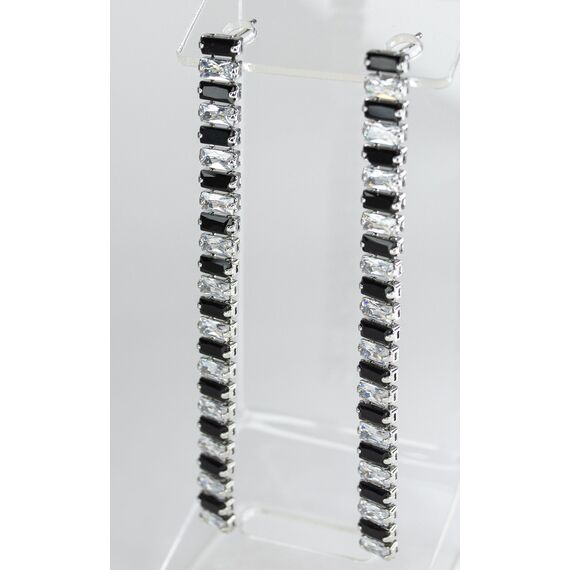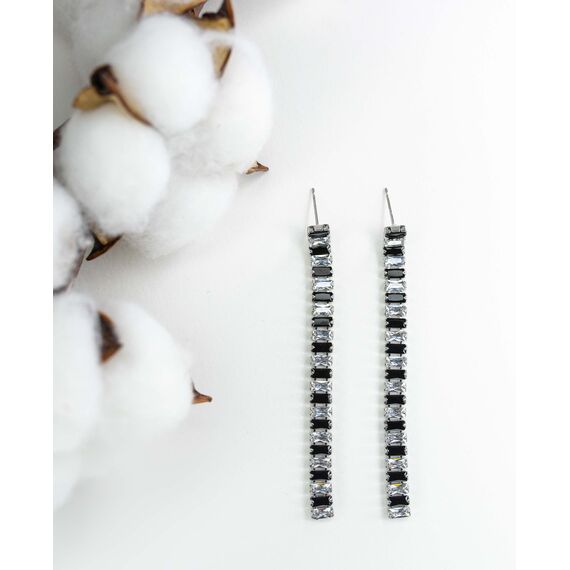 Серьги из гипоаллергенного ювелирного сплава серого цвета. Вставка- цирконы белого и черного цвета. Высота серег-15,0см, ширина-0,5см. Застежка- пусет.