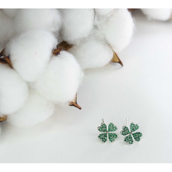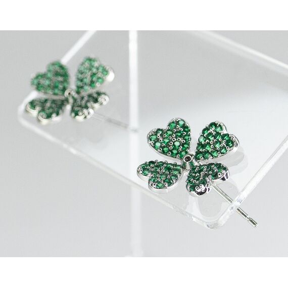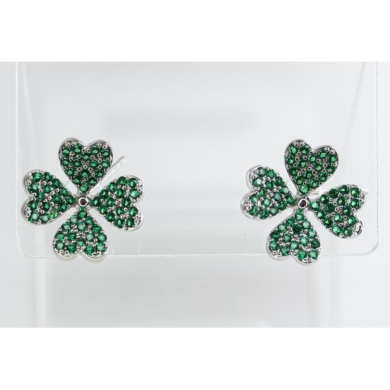 Серьги из гипоаллергенного ювелирного сплава серого цвета. Вставка- цирконы зеленого цвета. Высота серег-1,0см, ширина-1,0см. Застежка- пусет.