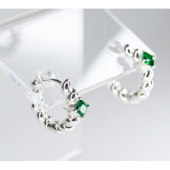 Серьги из гипоаллергенного ювелирного сплава, цвет-серый. Вставка- циркон зеленого цвета. Высота серег-1,2см, ширина-0,3см. Застежка- скоба.