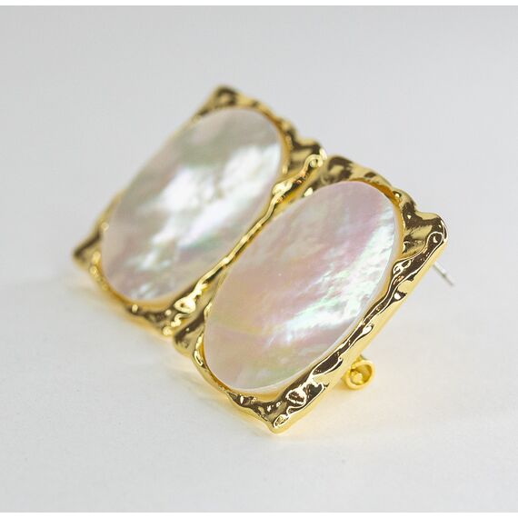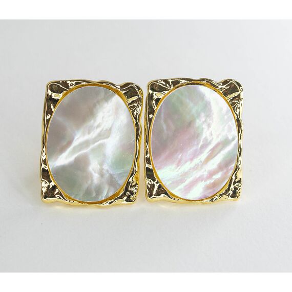Серьги из гипоаллергенного ювелирного сплава желтого цвета. Вставка- перламутр белого цвета. Высота серег-2,5см, ширина-2см. Итальянский замок ( швенза-1,2см и застежка- клипса).