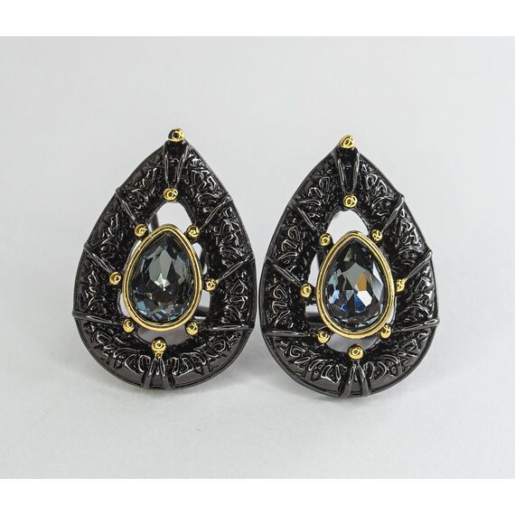 Серьги из гипоаллергенного ювелирного сплава черного и желтого цвета. Вставка- ювелирное стекло серого цвета. Высота серег-2,5см, ширина-2см. Итальянский замок( швенза-1,2см и застежка-клипса).