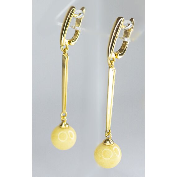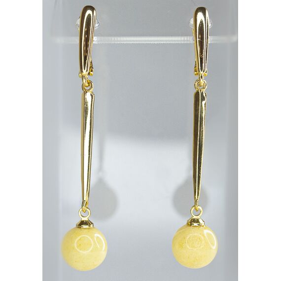 Серьги из гипоаллергенной бронзы с позолотой. Вставка- нат.янтарь белого цвета( диаметр камня-1,0см). Высота серег-5,0см. Застежка- английская ( швенза-1,0см).