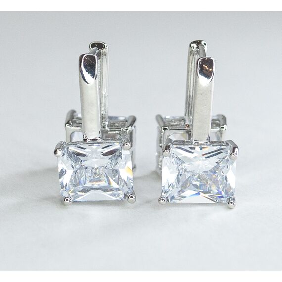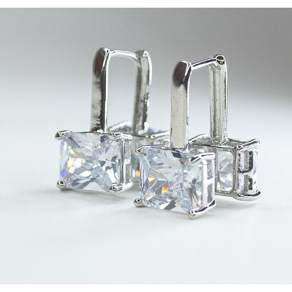 Серьги из гипоаллергенного ювелирного сплава серого цвета. Вставка- ювелирное стекло белого цвета. Высота серег-2см, ширина-1см. Размер камня ( 0,7/1,0см). Застежка- скоба.