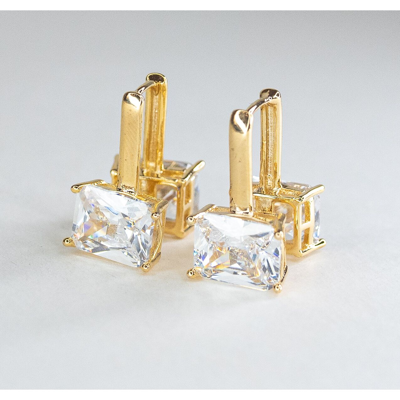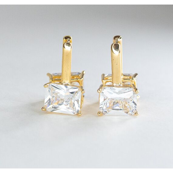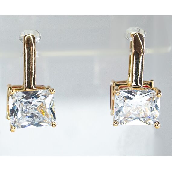 Серьги из гипоаллергенного ювелирного сплава желтого цвета. Вставка- ювелирное стекло белого цвета. Высота серег-2см, ширина-1см. Размер камня ( 0,7/1,0см). Застежка- скоба.