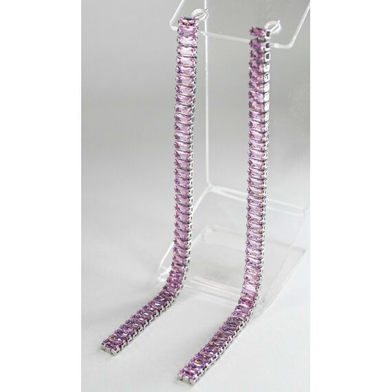 Серьги из гипоаллергенного ювелирного сплава серого цвета. Вставка - ювелирное стекло, цвет-розовый. Высота серег-13см.,ширина -0,5см. Застежка-пусет.