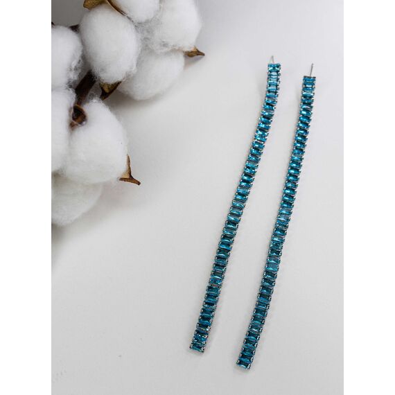 Серьги из гипоаллергенного ювелирного сплава серого цвета. Вставка ювелирное стекло, цвет- голубой. Высота серег-13см.,ширина -0,5см. Застежка-пусет.